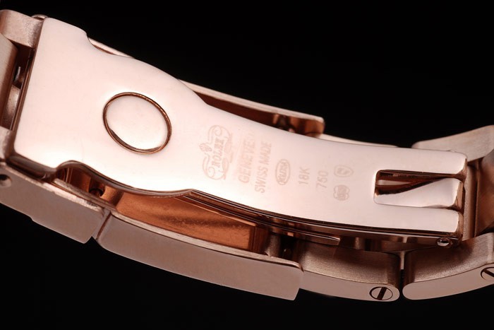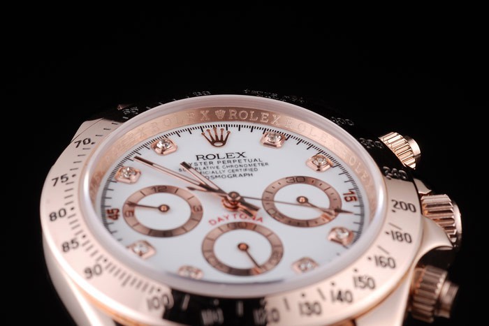 Un alt aspect notabil al Rolex Daytona Replica este bezelul său din aur roz de 18k, care este marcat cu unități pe oră negre, adăugând un contrast elegant. Mecanismul de funcționare, împreună cu coroana tăiată din aur roz, decorată cu logo-ul Rolex și coroanele mai mici de pe laturile sale, completează perfect estetic designul general al acestui cronograf. Această realizare nu este doar o simplă replica watch Rolex, ci o adevărată piese de artă.